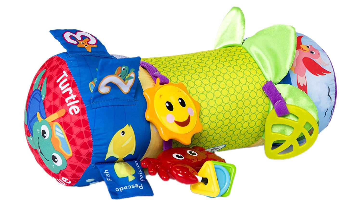 Plush comfort and fun discovery toys make the rhythm of the reef prop pillow baby's perfect companion.